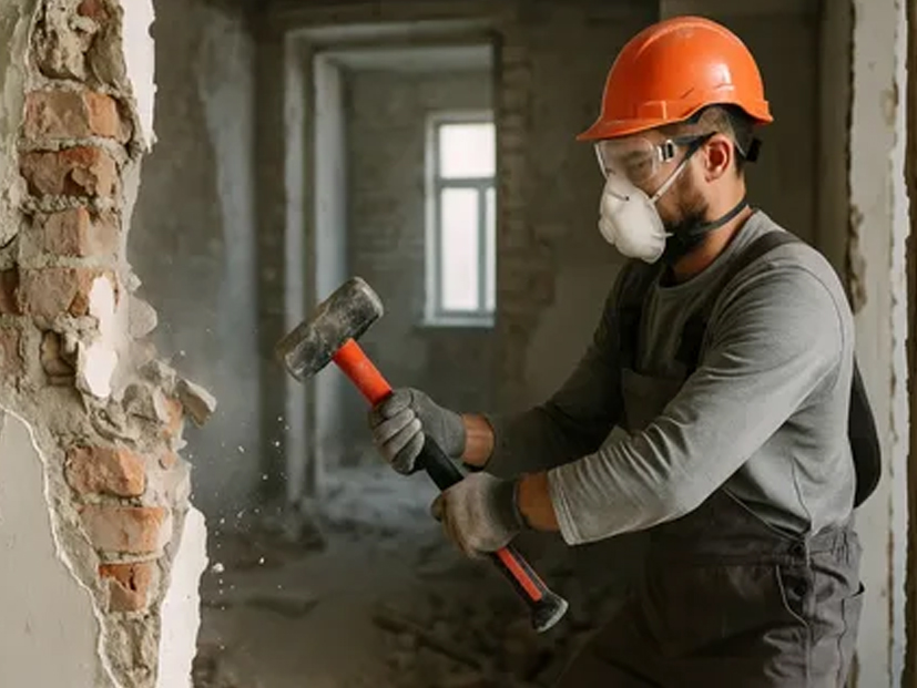Будь-який ремонт (крім ремонту у новобудовах) починається з “розбору завалів” – зняття шпалер, плитки, старої стяжки, сантехніки, стель. Ціна залежить від площі приміщення, типу покриття, складності. Демонтаж кахлю або штукатурки – не те саме, що відірвати старі шпалери. Сюди також додається винос із вивоз будівельного сміття. Демонтаж складає, зазвичай, перший пункт кошторису.